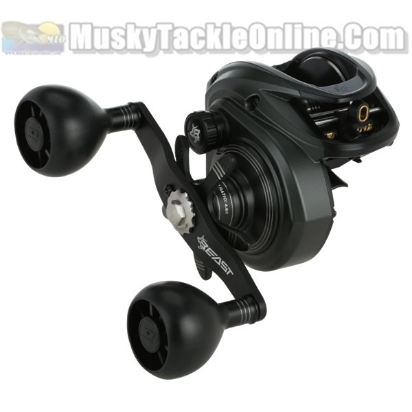 Designed for cranking power, drag performance and durability, the Beast 400 series has been completely redesigned to give anglers a large format LP reel that is easy to palm, giving anglers more fish stopping power than any other reel in this class. Designed for anglers throwing big baits for Muskie and large swimbaits.