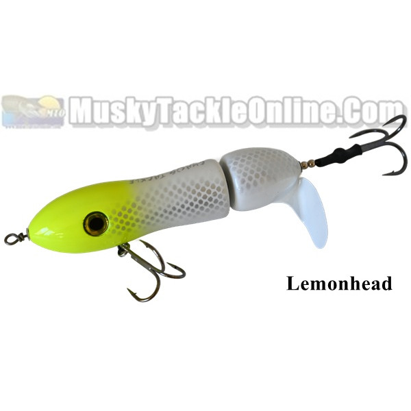 A strong,heavy topwater prop bait with a thick head that leaves an awesome wake behind it. Psycho Sis'tr moves with a nice wobble and a distinct "ploppity-plop" from its custom-designed blade. Solid wood construction, .062 thru-wire construction and a .030 custom designed prop on the tail.
