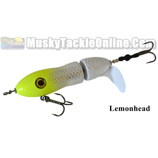 A less girthy version of the Psycho Sis'tr , the Twis'td Sis'tr has been a proven muskie getter from its first day on the water. Solid wood construction, .062 thru-wire construction and a .030 custom designed prop on the tail.