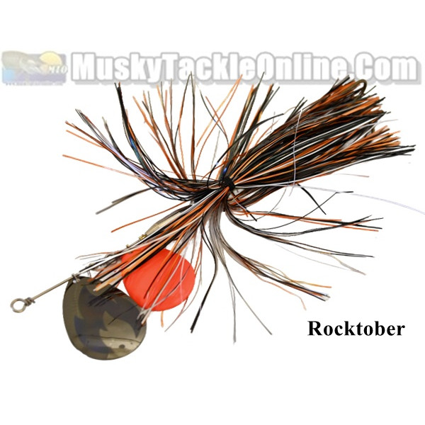 An inline bucktail built for speed and insanity. This is a jointed bucktail with staggered blades, a Colorado #8 in front of a Colorado #7. The unique design results in the blades spinning independently of each other. The combination of speed and vibration causes the blades to intermittently tick, stutter, and surge. Use this bait when the muskies have the need for speed.