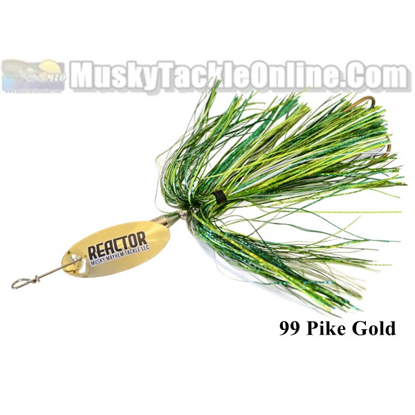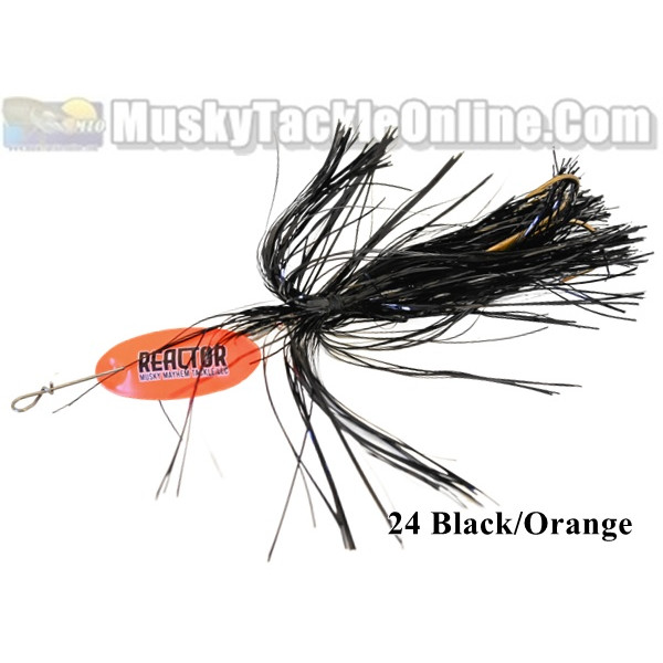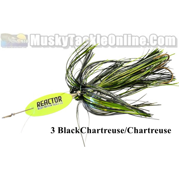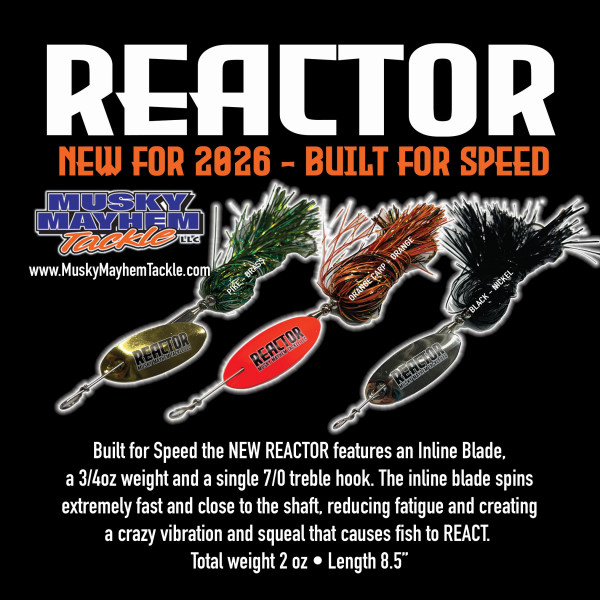 The Reactor from Musky Mayhem Tackle is built for speed. It features an inline blade, a 3/4 oz weight and a single 7/0 treble hook. The inline blade spins extremely fast and close to the shaft, reducing fatigue and creating a crazy vibration and squeal that causes fish to REACT.