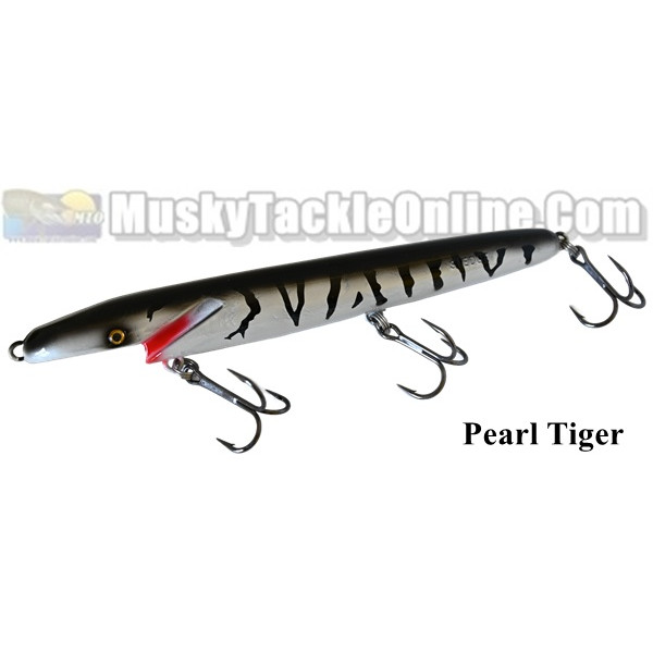 This weighted version can be worked to a depth of 3 -4 feet. With a constant reeling and pumping action of the rod you will give this bait an aggressive chop style action with a zigzag dying fish presentation.