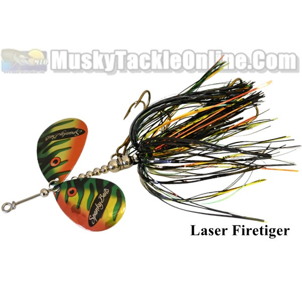 The Spanky Baits 89 Firebomb offers a Mag 9 and a Mag 8 blade. This premier in-line spinnerbait features a new unique offset action that thumps in the water, creating a different turbulence than matched blades.
